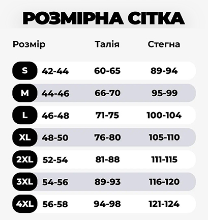- Розміри: Обхват стегон 90–140 см